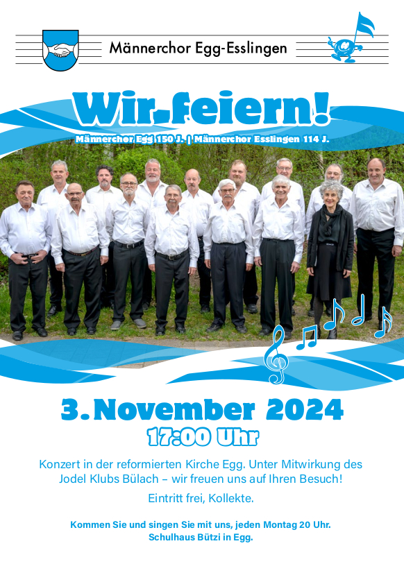 Der Jodelklub Bülach ist beim Jubiläum des Männerchors als Gastverein mit dabei. Wir freuen uns!